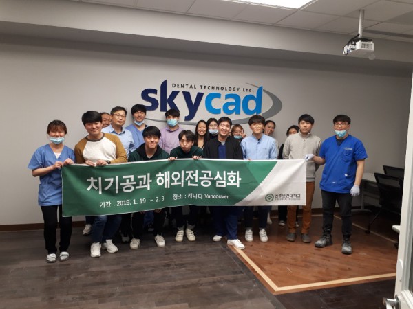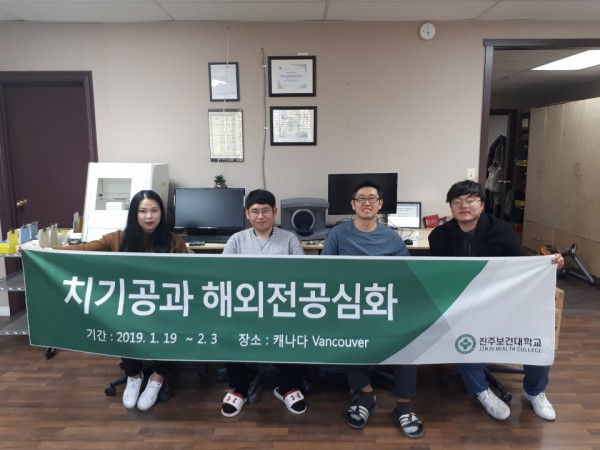 진주보건대학교 치기공과 재학생 5명이 지난 겨울방학 중(2019.01.19(토) ∼ 02.03(일)) 글로벌 역량을 키우기 위해 2주간 ‘해외전공심화 프로그램’을 다녀왔다. 1차 선발시험은 학과성적, 토익점수 등을 평가하였으며, 2차 사전교육은 5주 동안 어학교육과 캐나다 현지생활 오리엔테이션을 하였다. 치기공과 학생과 지도교수로 이뤄진 실습단은 캐나다 밴쿠버에 위치한 Supreme Dental Lab, SkyCAD Dental Technology Ltd.에서 치기공 임상실습을 2주간 진행했다. 실습 참여 학생들은 치과기공소 직원들과 교류하며 캐나다와 한국의 치과기공 시스템 차이 등을 주제로 발표를 진행하기도 했다. 이번 해외전공 실습은 평범한 견학 수준에 그치지 않고, 학생들이 직접 치과보철물을 제작하며 배우는 최고 수준으로 진행된 것이 특징이다. 한편 진주보건대학교 치기공과는 학생들이 전공분야에 대한 이해 증진과 자긍심 고취, 해외 실무교육을 통해 글로벌 역량 강화, 해외 취업에 도전할 수 있는 동기 부여, 국제수준의 인재 양성을 통한 우수 산업체 취업률 제고를 위해 올해부터 해외 현장실습을 진행하고 있다.